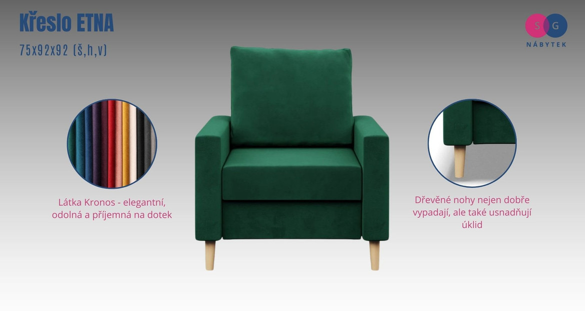 Křeslo ETNA je moderní a stylový kus nábytku, který byl navržen s ohledem na lidi kteří oceňují pohodlí a funkčnost.