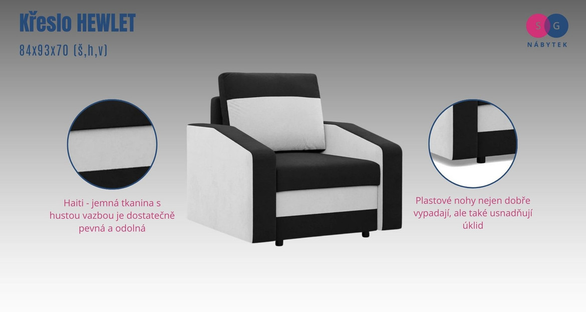 Křeslo HEWLET je moderní a stylový kus nábytku, který byl navržen s ohledem na lidi kteří oceňují pohodlí a funkčnost. Je vyrobeno z pevných, vysoce kvalitních materiálů. Nohy jsou vyrobeny z plastu.