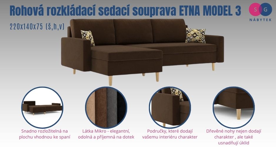 Rohová rozkládací sedací souprava ETNA model 2.