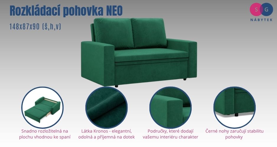Rozkládací pohovka NEO - rovný bok - Kronos.