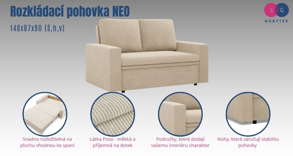 Rozkládací pohovka NEO - rovný bok - Poso.