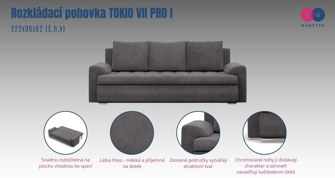 Rozkládací pohovka TOKIO VII PRO I Šedá