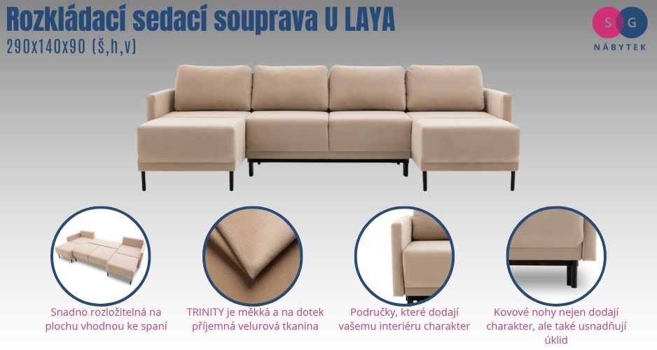 Rohová sedací souprava Laya U je produktem, který byl zachován v jednoduché minimalistické podobě.