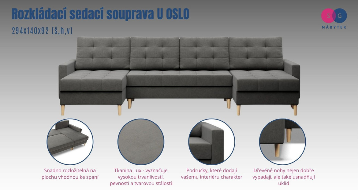 Pevná konstrukce ze dřeva a OSB desky. Snadné rozkládání pohovky na lůžkovou podobu. Moderní skandinávský design vhodný do všech současných interiérů.