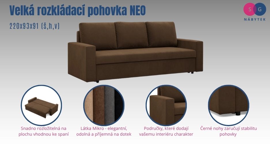 Velká rozkládací pohovka NEO - rovný bok - model 2.