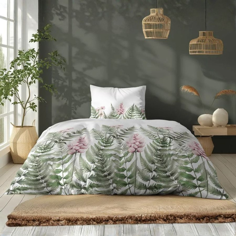 Bavlněné povlečení 5248 květy a kapradí 140x200 cm.