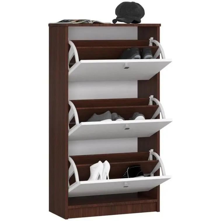 Botník se třemi dvířky je funkční botník, který lze použít v každé domácnosti. Vytvoříte sním funkční, reprezentativní uvítací prostor. Za výklopnými dvířky najdete úložný prostor, do kterého můžete uskladnit několik párů bot. Hodí se nejen do domácnosti ale i do hotelů, penzionů a kanceláří.