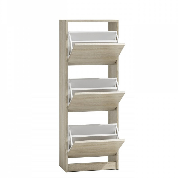 Botník Paula tři díly, je moderní a praktický prvek do vstupních prostor vašeho domu. Moderní botník Paula si oblíbíte díky jeho minimalismu a velkému úložnému prostoru. V botníku najdete celkem tři výklopné zásuvky, do kterých se vejde několik párů bot.