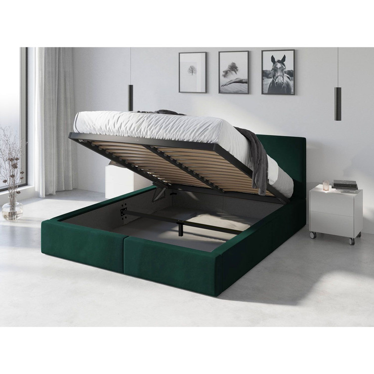 Po zvednutí roštu je prostor rozdělen přepážkou. Zadní část přepážky nemá panel, zatímco přední část obsahuje přihrádku na ložní prádlo.