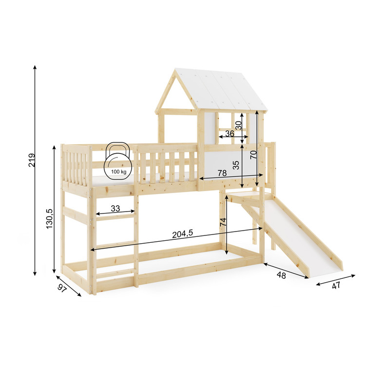 Dětská patrová postel ANTRESOLA se skluzavkou 90x200 cm.