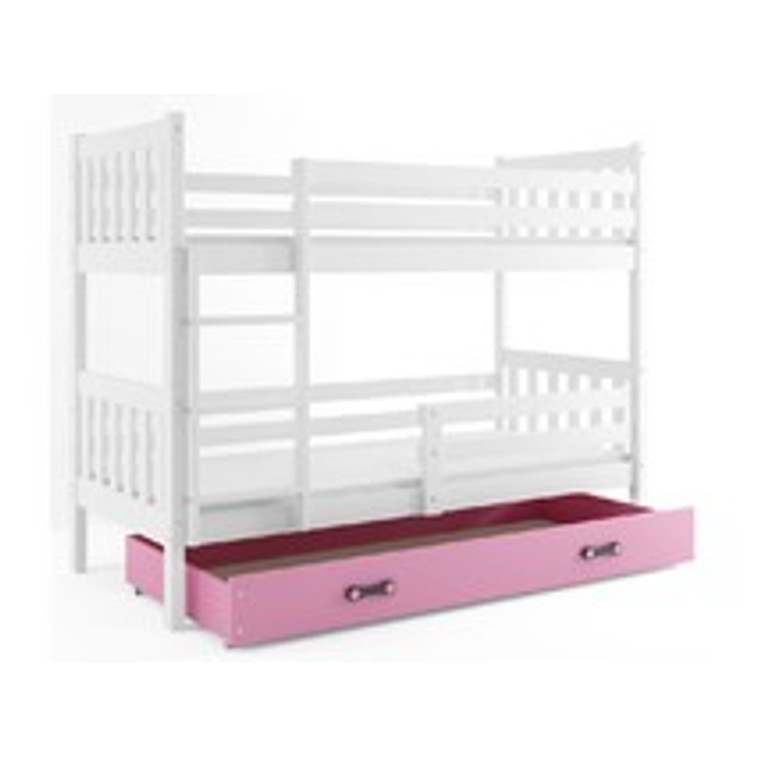 Dětská patrová postel CARINO s úložným prostorem 80x190 cm - bílá Ružové
