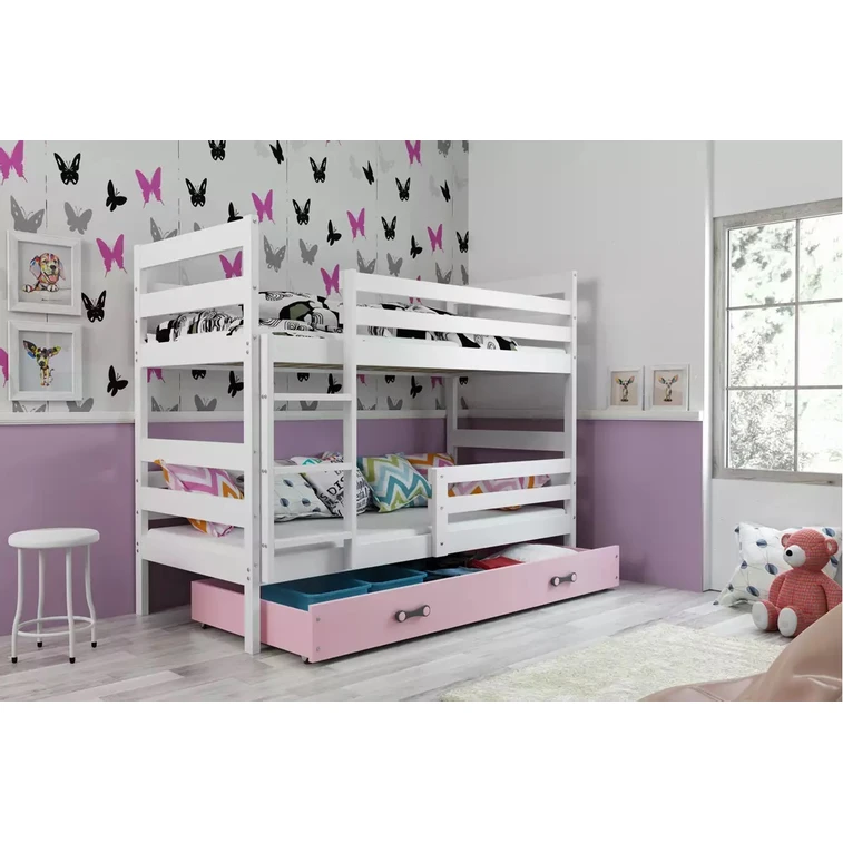 Dětská patrová postel ERYK 80x190 cm - bílá Růžová