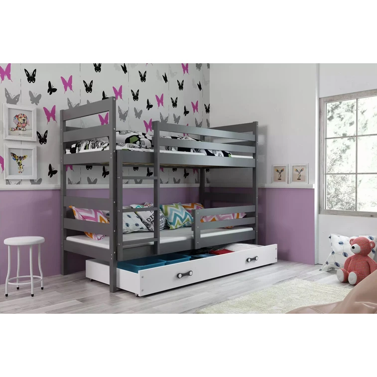 Dětská patrová postel ERYK 90x200 cm - grafit Bílá