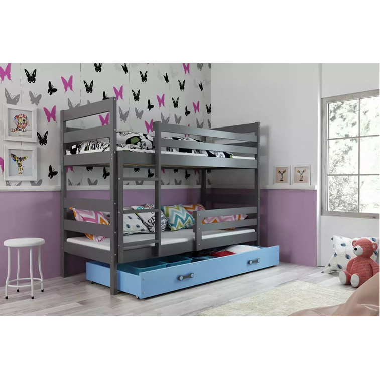 Dětská patrová postel ERYK 90x200 cm - grafit Modrá