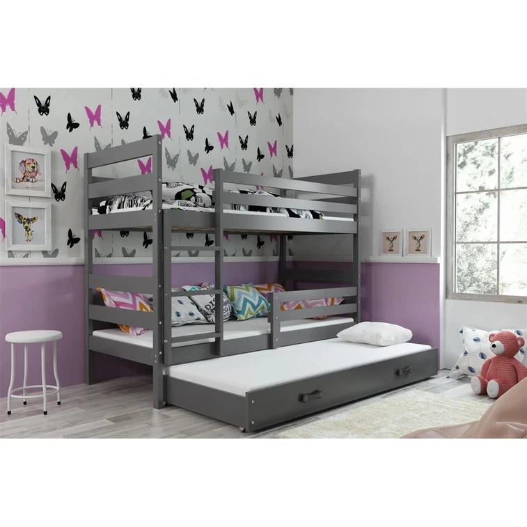 Dětská patrová postel ERYK s výsuvným lůžkem 90x200 cm - grafit.