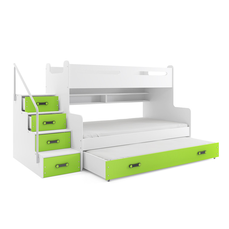 Dětská patrová postel MAX III s výsuvnou postelí 80x200 cm - bílá Zelená
