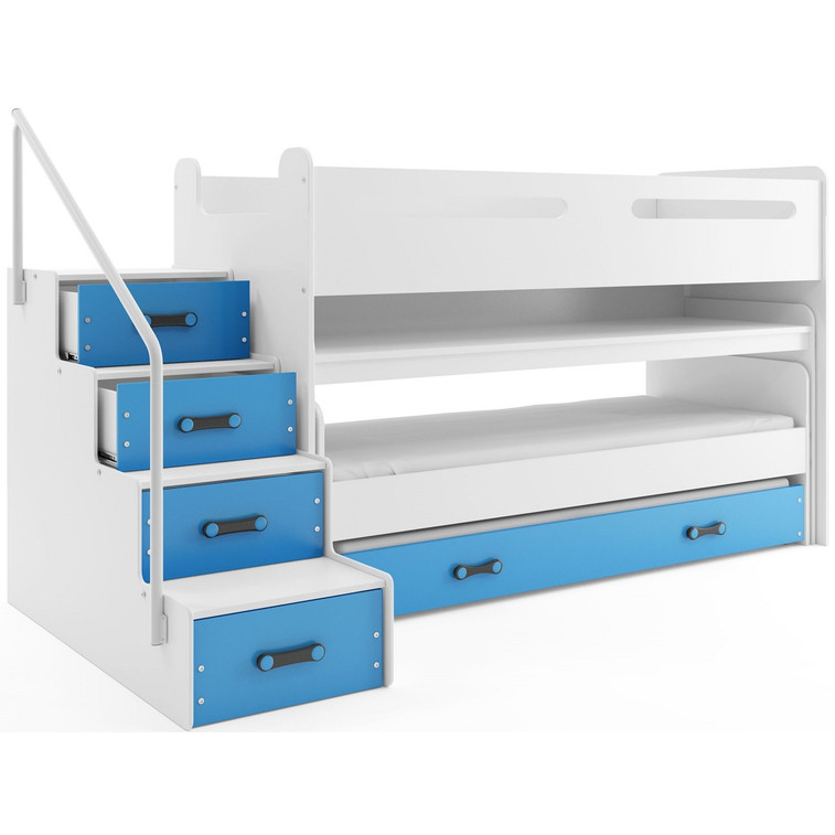 Dětská patrová postel s výsuvnou postelí MAX I 80x200 cm - bílá Modrá
