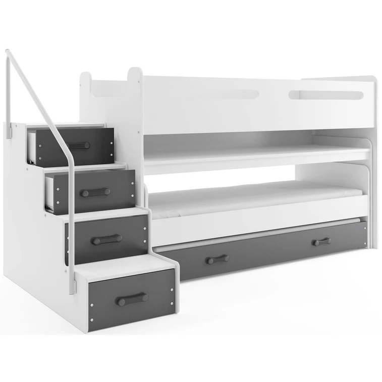 Dětská patrová postel s výsuvnou postelí MAX I 80x200 cm - bílá Šedá