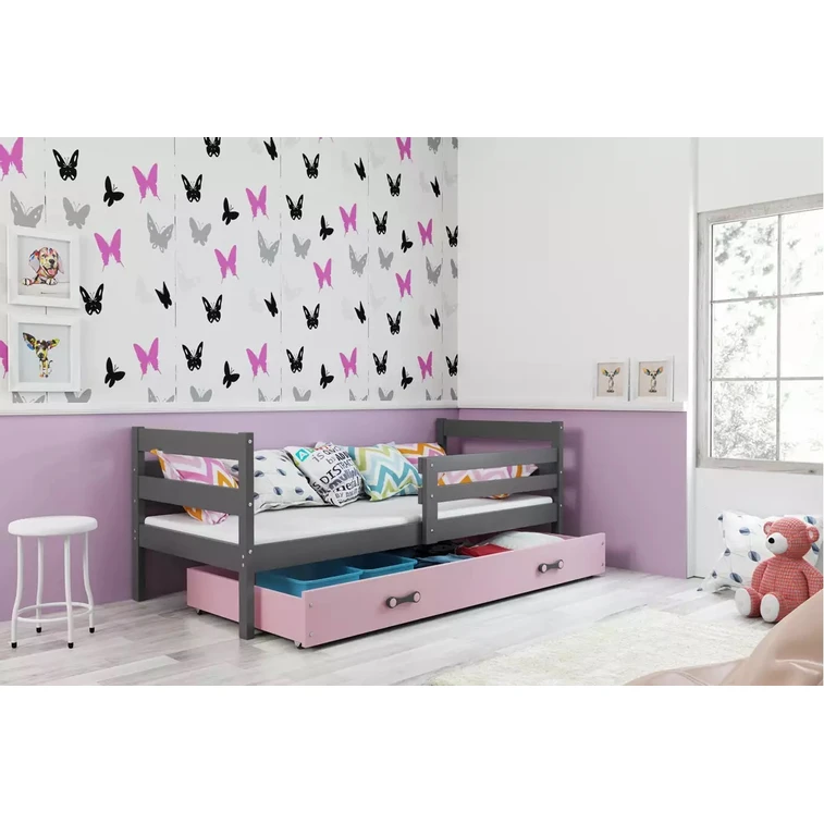 Dětská postel ERYK 190x80 cm Šedá Ružové