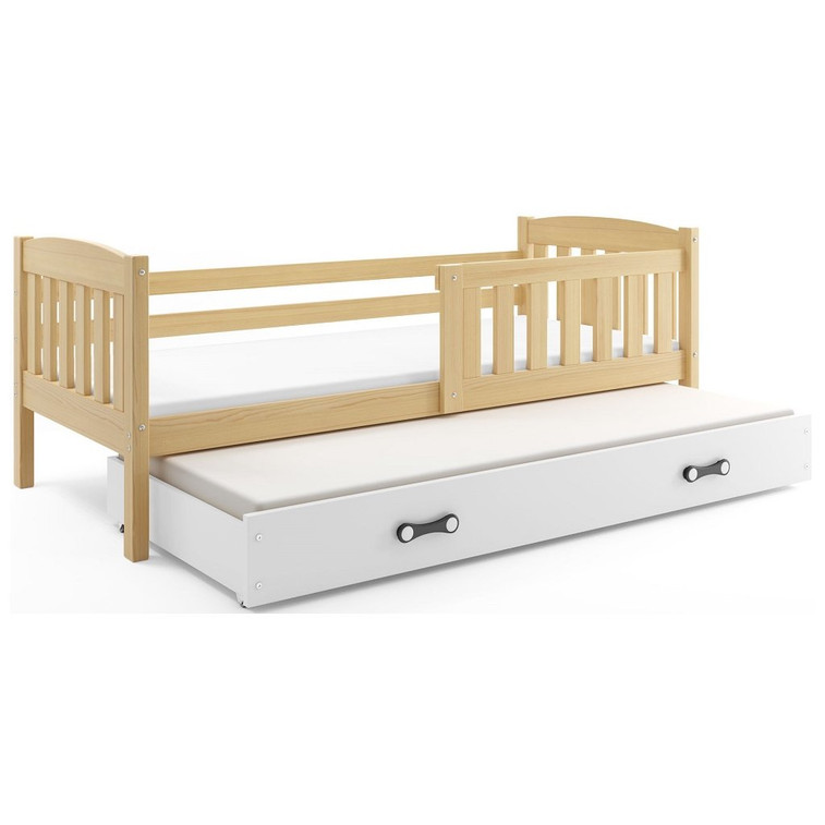 Dětská postel Kubus s výsuvnou postelí včetně matrací a roštů. Postel obsahuje ochrannou zábranu. S ohledem na děti je veškerý sortiment vyroben ekologicky. Je tedy vyloučeno při kontaktu dítěte s nábytkem požití toxických nebo zdraví škodlivých látek.