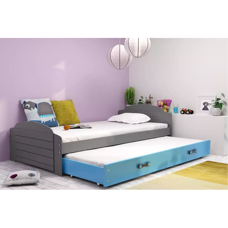 Dětská postel LILI s výsuvným lůžkem 90x200 cm - grafit Modrá