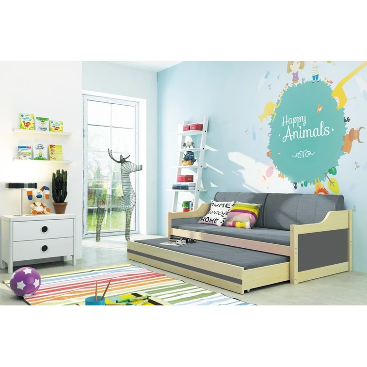 Dětská postel nebo gauč s výsuvnou postelí DAVID 190x80 cm. Postel je vyrobena z masivního dřeva. S ohledem na děti je veškerý sortiment vyroben z ekologicky nezávadného materiálu.