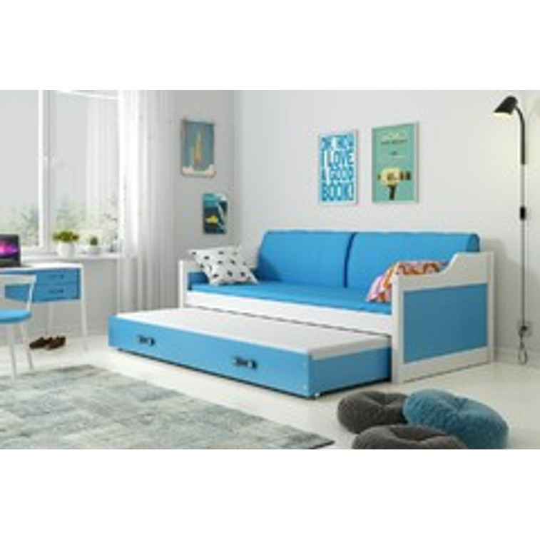 Dětská postel nebo gauč s výsuvnou postelí DAVID 190x80 cm Modrá Bílá