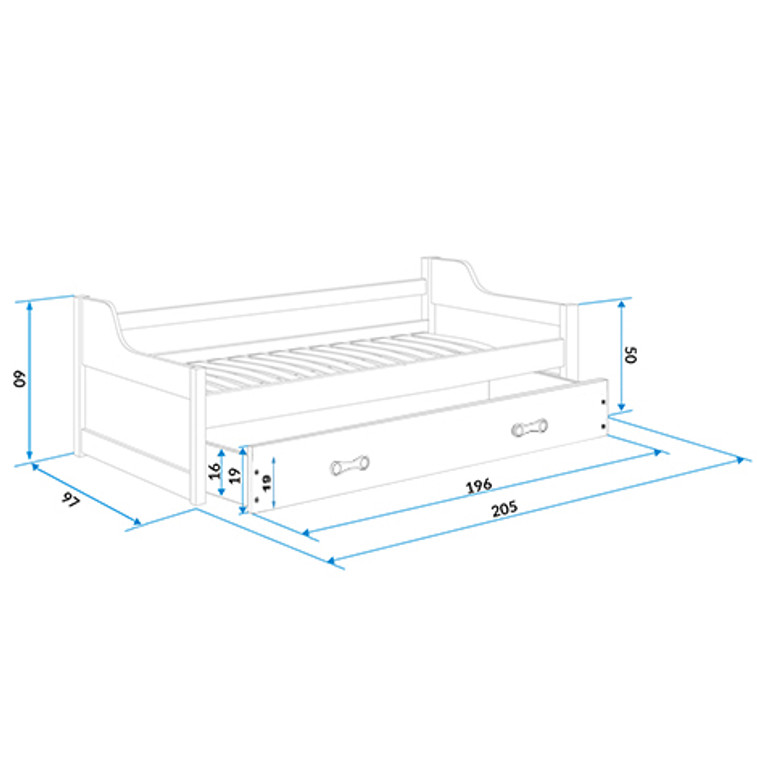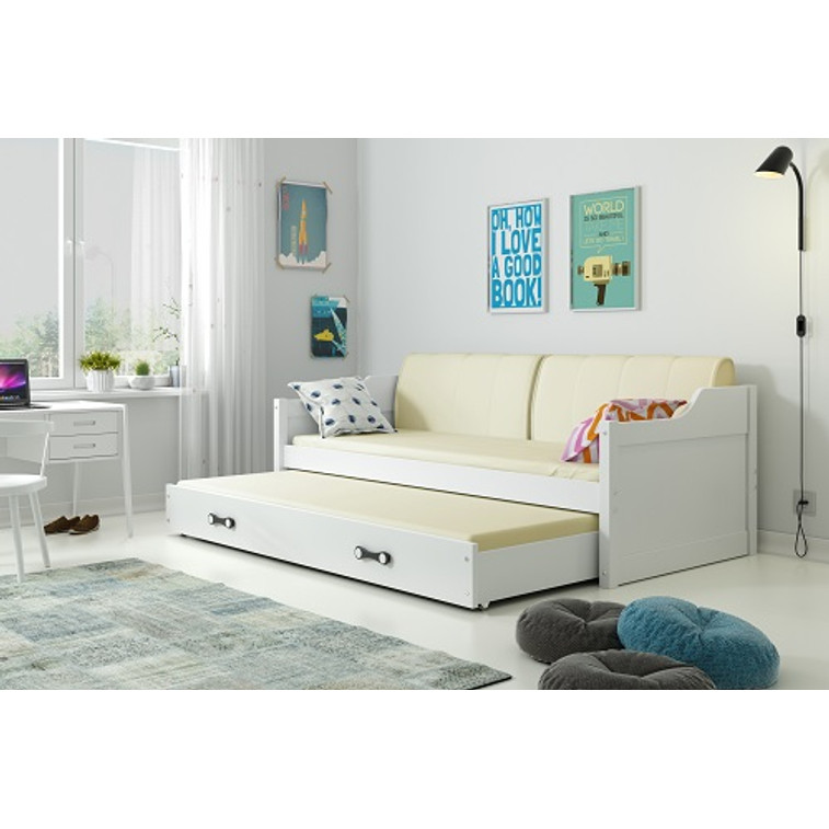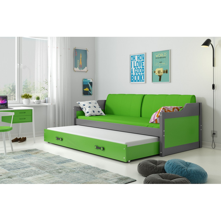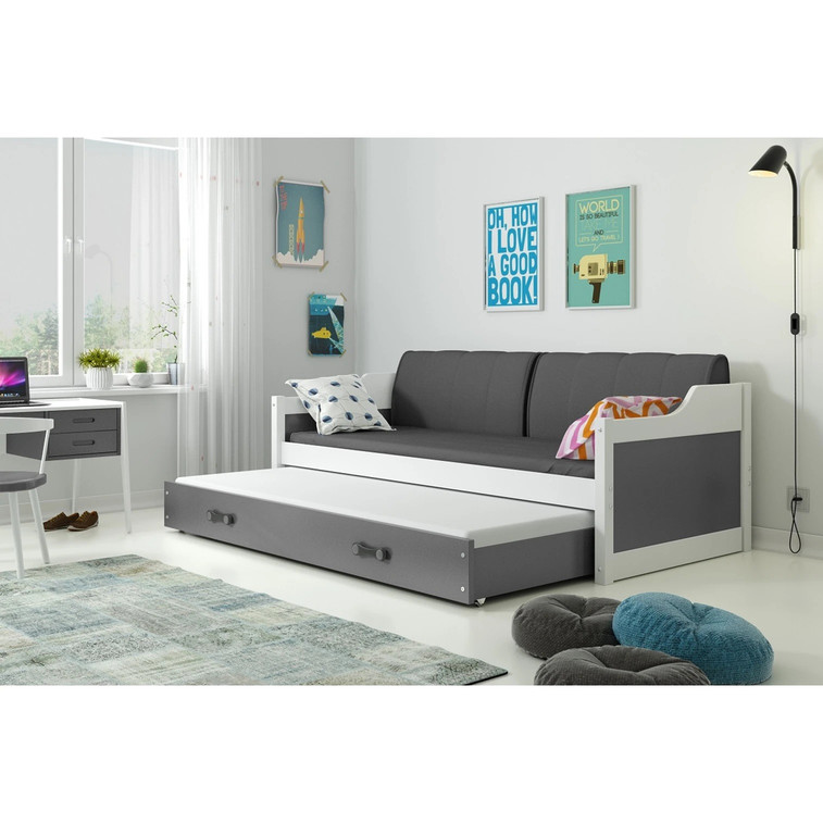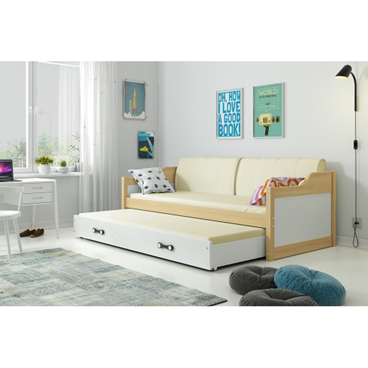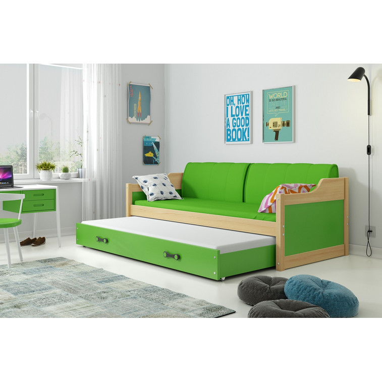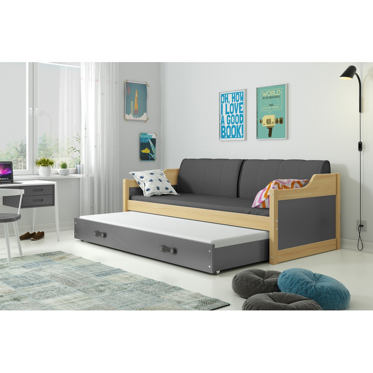 Dětská postel nebo gauč s výsuvnou postelí DAVID 90x200 cm. Postel je vyrobena z masivního dřeva. S ohledem na děti je veškerý sortiment vyroben z ekologicky nezávadného materiálu.
