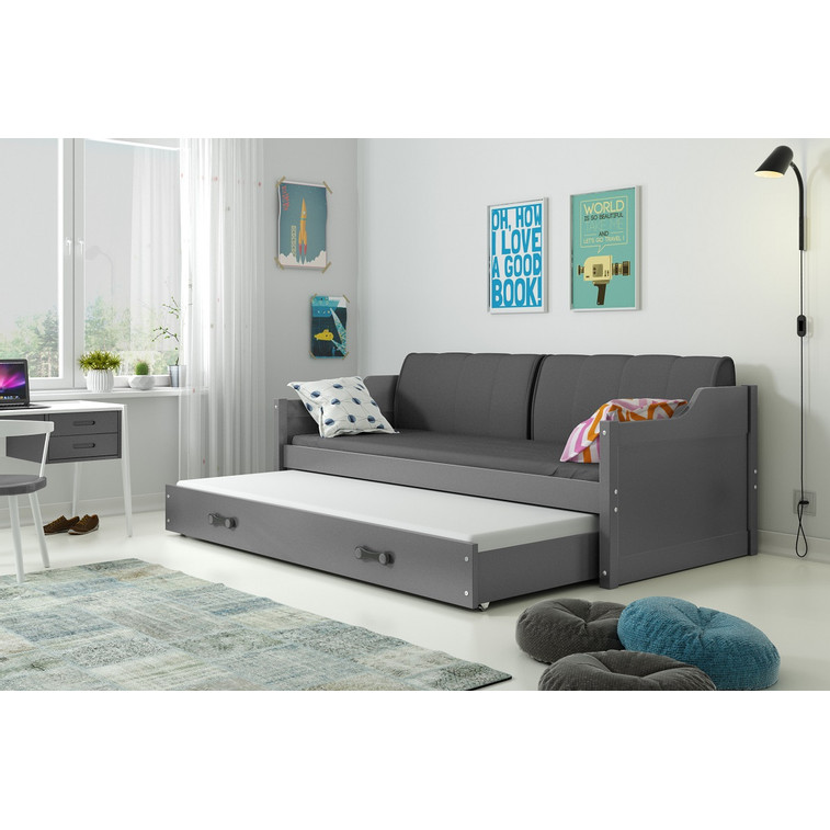 Dětská postel nebo gauč s výsuvnou postelí DAVID 200x90 cm Modrá Šedá