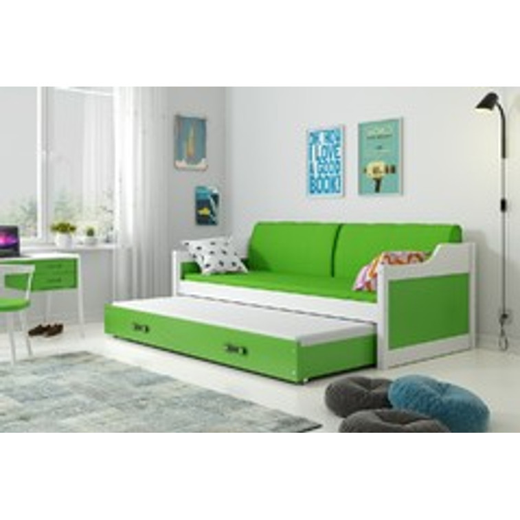 Dětská postel nebo gauč s výsuvnou postelí DAVID 90x200 cm. Postel je vyrobena z masivního dřeva. S ohledem na děti je veškerý sortiment vyroben z ekologicky nezávadného materiálu.