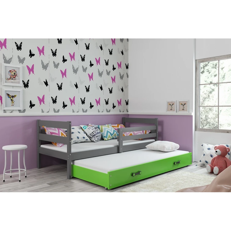 Dětská postel s výsuvnou postelí ERYK 190x80 cm Zelená Šedá