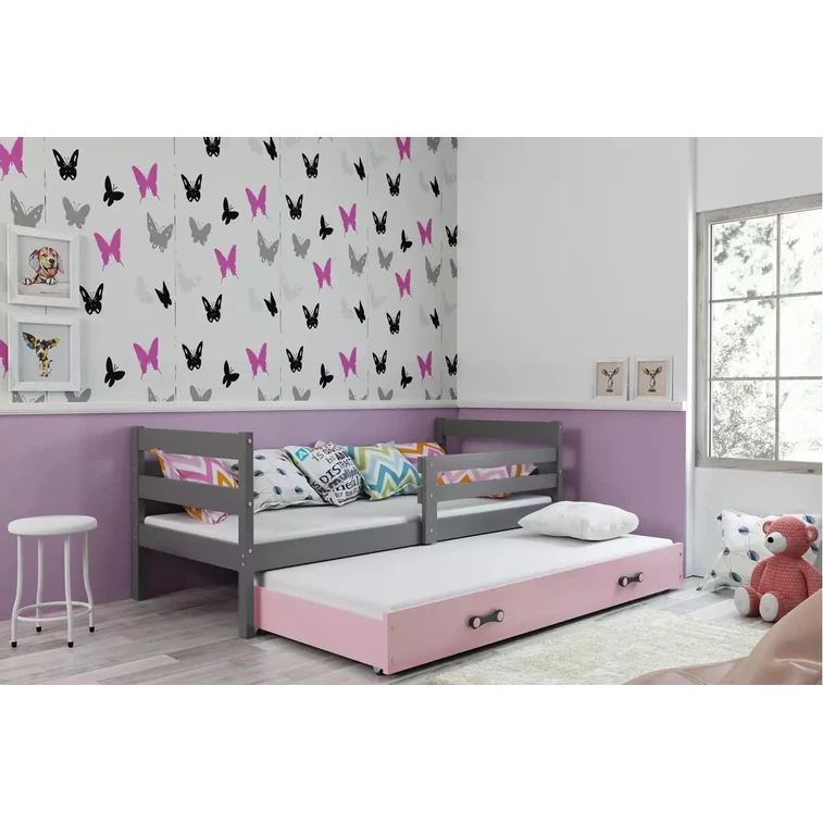 Dětská postel s výsuvnou postelí ERYK 200x90 cm Šedá Ružové