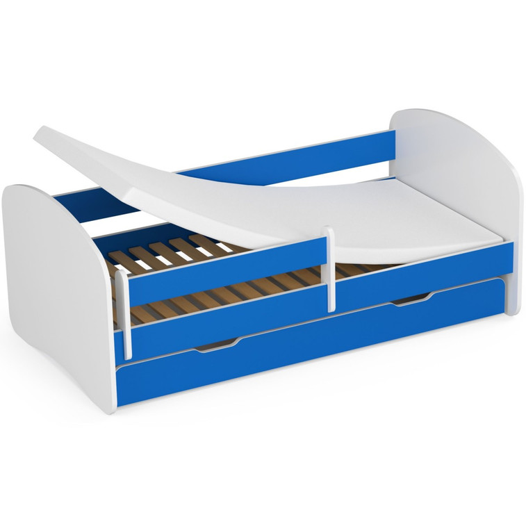 Dětská postel Smile s úložným prostorem včetně matrace a roštu. S ohledem na děti je veškerý sortiment vyroben ekologicky. Je tedy vyloučeno při kontaktu dítěte s nábytkem požití toxických nebo zdraví škodlivých látek.