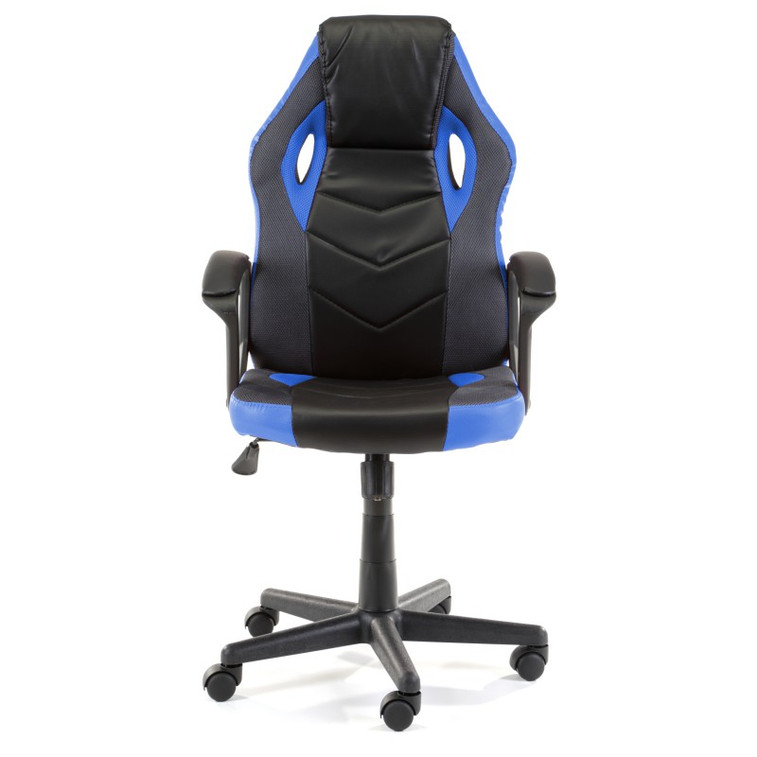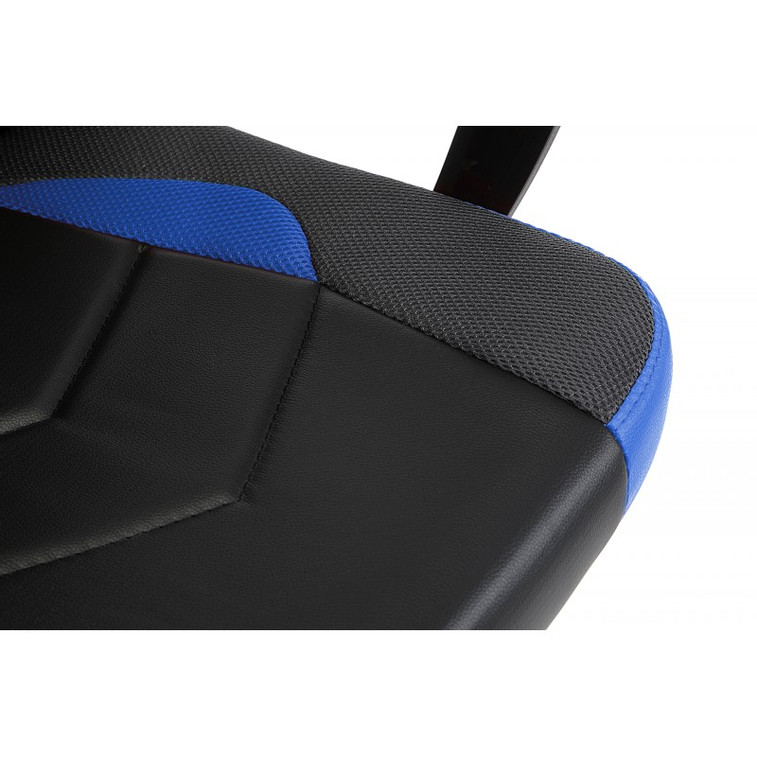 Herní židle F4G FG19 s moderním designem je vyrobena z ekologické kůže. Je určena pro lidi, kteří tráví hodně času za stolem – především pro hráče, ale i pro lidi, kteří dlouhodobě pracují u počítače. Díky černé a modré barvě spolu se stylovými výřezy v opěradle se produkt hodí do většiny interiéru.