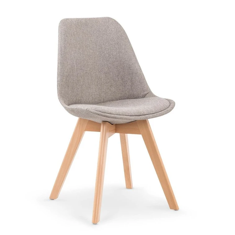 Židle má moderní skandinávský design. Dřevěná konstrukce zajišťuje pevnost židle.