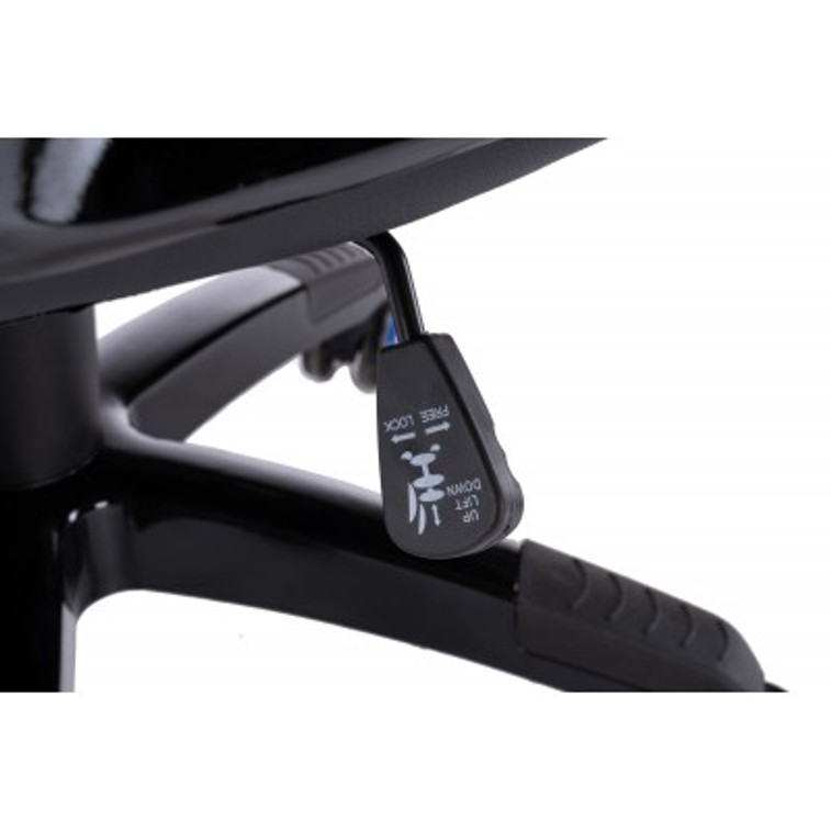 Tato židle je vybavena výškově nastavitelným sedákem, područkami, opěrkou hlavy a bederní opěrkou, aby poskytovala uživatelům pohodlné a ergonomické sezení. Sedák lze libovolně sklopit dozadu a lze jej uzamknout.
