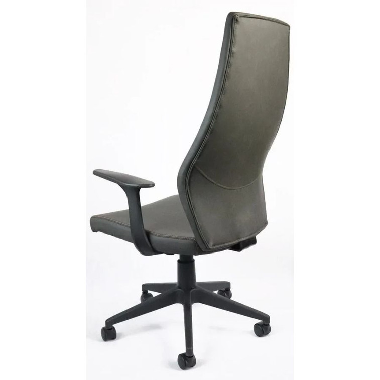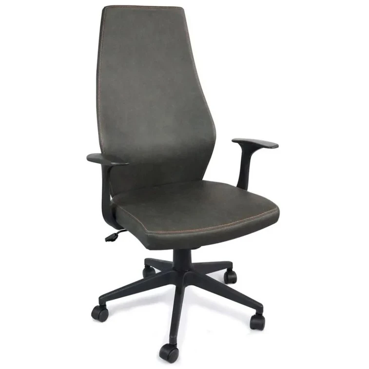 Kancelářské křeslo ADK Line je velice elegantním kouskem, který poskytne potřebné množství komfortu a odpočinku zádovým partiím, které dostávají nejvíce zabrat během několikahodinového sezení. Celý sedák a opěrák židle ADK Line je poté vyplněn PUR pěnou a čalouněn kvalitní tmavě šedou eko kůží. Tento velice spolehlivý materiál, který se snadno udržuje, má na pohled i na dotek strukturu klasické přírodní kůže. Zvolená tmavě šedá eko kůže je poté, po celém obvodu sedáku a opěráku.