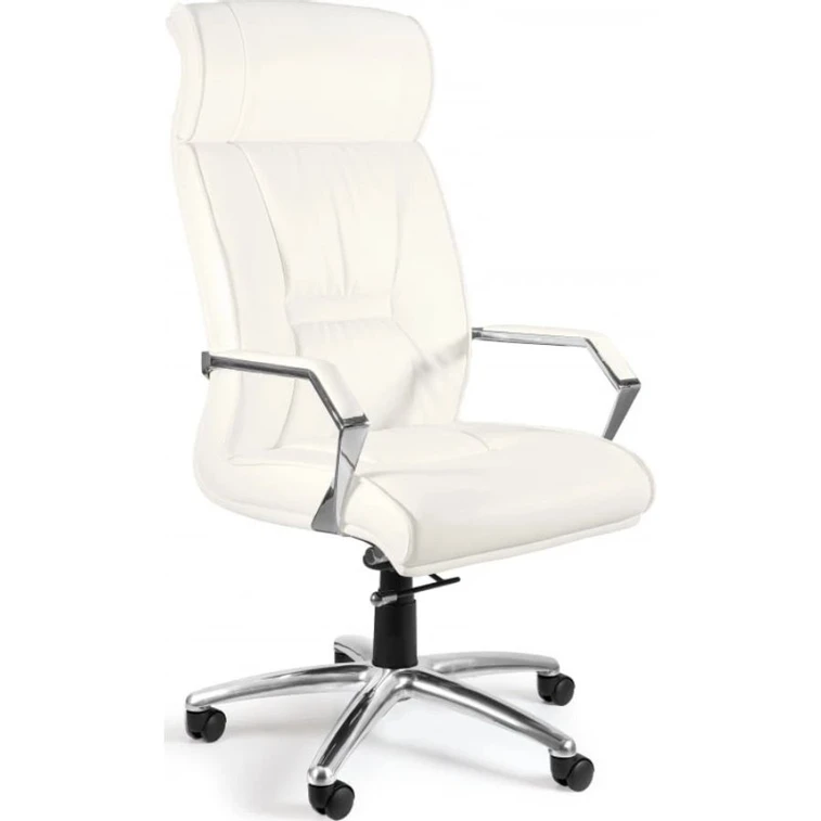 Elegantní a designové kancelářské křeslo, jehož součástí je výrazná hlavová opěrka. Křeslo nabízí kovový kříž a kovové područky, které jsou očalouněny do ekokůže, stejně, jako celé křeslo. Mechanika je houpací, s aretací v základní poloze.