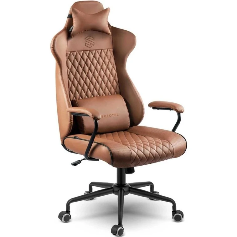 Celý sedák společně s opěrákem, jsou čalouněny kvalitní eko kůží. Tento materiál je velmi odolný a snadno se udržuje. Eko kůže je po téměř celé ploše sedáku a opěráku kříženě prošívaná. Toto prošívání dodává celé židli, společně s černými kovovými prvky, neokoukaný vzhled. Vaši pozornost určitě také upoutá snímatelný polštářek, který doplňuje opěrku hlavy a bederní polštář, který Vám dopřeje několikahodinové pohodlné sezení a nesmírný odpočinek.