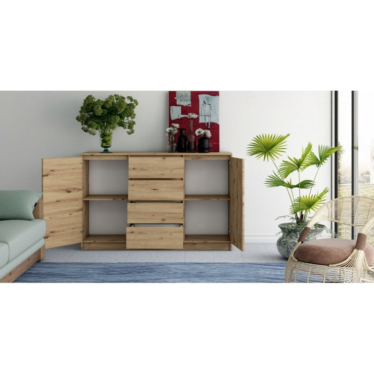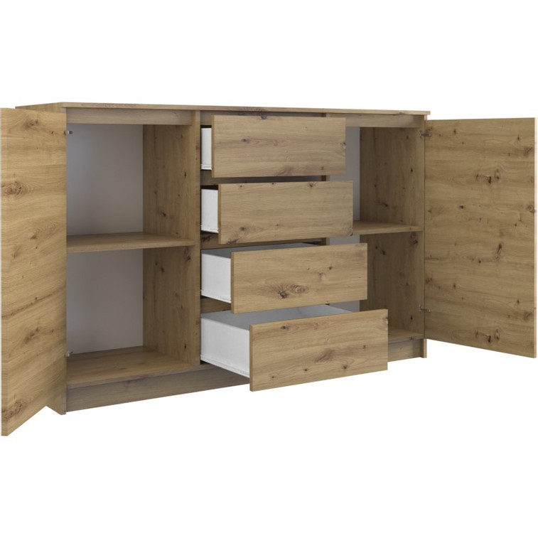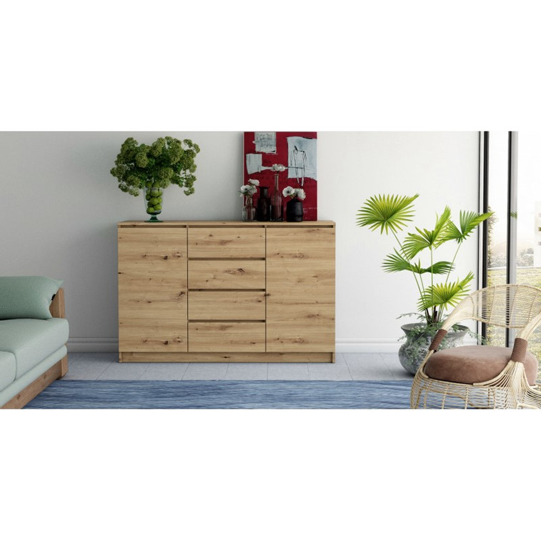 Jednoduchá a moderní komoda 2D4S. Je vyrobená z pevné laminované desky, která je odolná proti oděru a poškození. Univerzální vzhled splní očekávání každého, kdo ocení kombinaci jednoduchosti a elegance. Bezúchytková čela zásuvek zajišťují pohodlné používání.