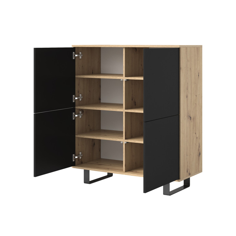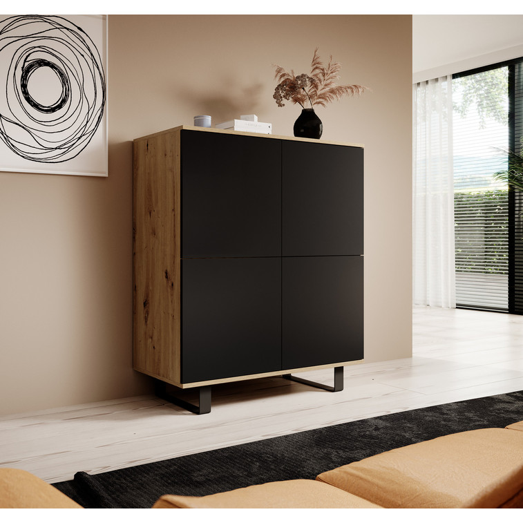 Komoda 4D LOGAN. Kdo by nesnil o pevné, elegantní a funkční komodě. Jedná se o oblíbený kus nábytku, který v naší nabídce nemohl chybět. Nábytek vypadá vizuálně zajímavě, hodí se tak do obývacího pokoje, ložnice, obývacího pokoje nebo předsíně.