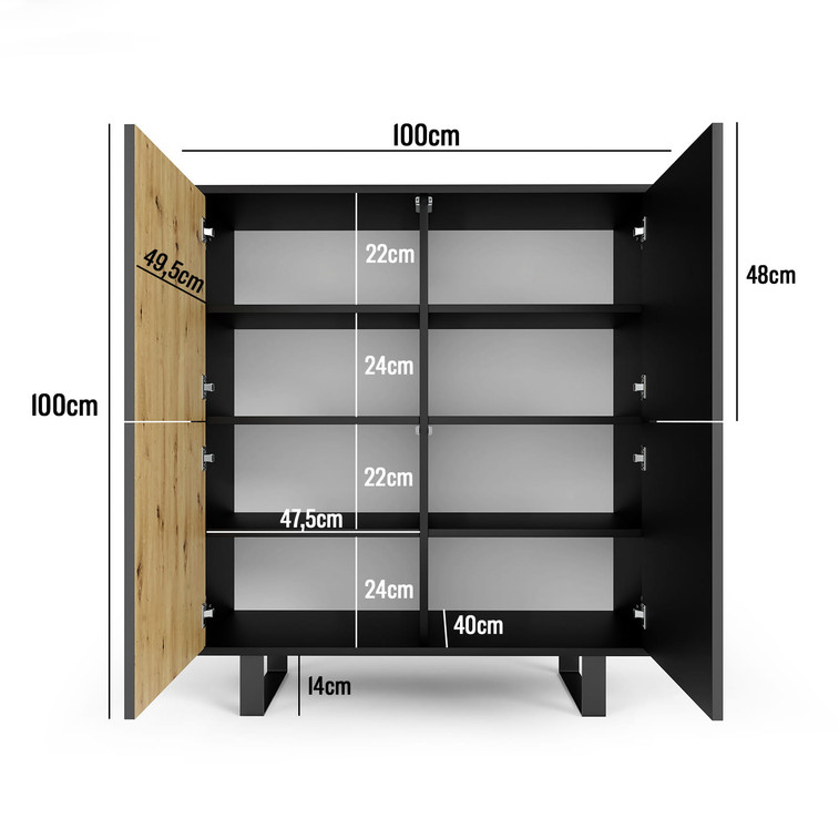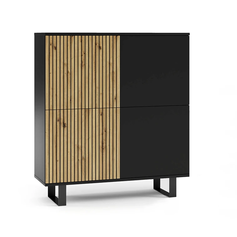 Je vyrobená z pevné laminované desky, která je odolná proti oděru a poškození. Její vzhled splní očekávání každého, kdo ocení kombinaci jednoduchosti a elegance. Bezúchytková dvířka zajišťují pohodlné používání.