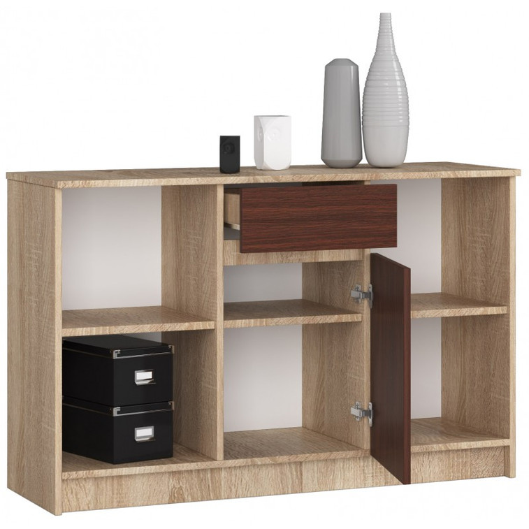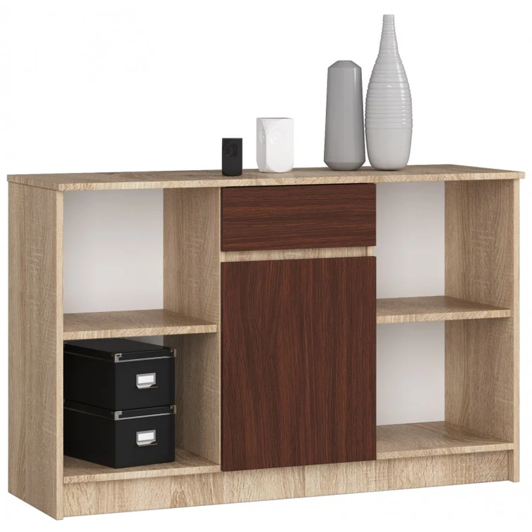 Jednoduchá a moderní komoda B-17. Je vyrobená z pevné laminované desky, která je odolná proti oděru a poškození. Univerzální vzhled splní očekávání každého, kdo ocení kombinaci jednoduchosti a elegance.