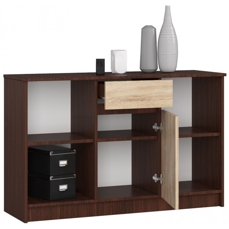 Jednoduchá a moderní komoda B-17. Je vyrobená z pevné laminované desky, která je odolná proti oděru a poškození. Univerzální vzhled splní očekávání každého, kdo ocení kombinaci jednoduchosti a elegance.