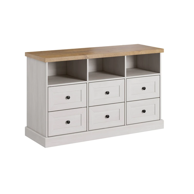 Komoda BOSTON K6S je z elegantní kolekce rustikálního nábytku. Pevná konstrukce a kombinace dekorů, jsou zárukou, že se budete cítit příjemně a útulně. Nábytek z kolekce Boston se perfektně hodí do obývacích pokojů. Kovové úchytky vhodně doplňují celkový luxusní vzhled kolekce. Jedinečný design je sklouben s vysokou funkčností, takže se nemusíte bát, že váš nový nábytek bude pouze na ozdobu. Každá komoda nabízí dostatek úložného prostoru, kam umístíte všechny potřebné věci.