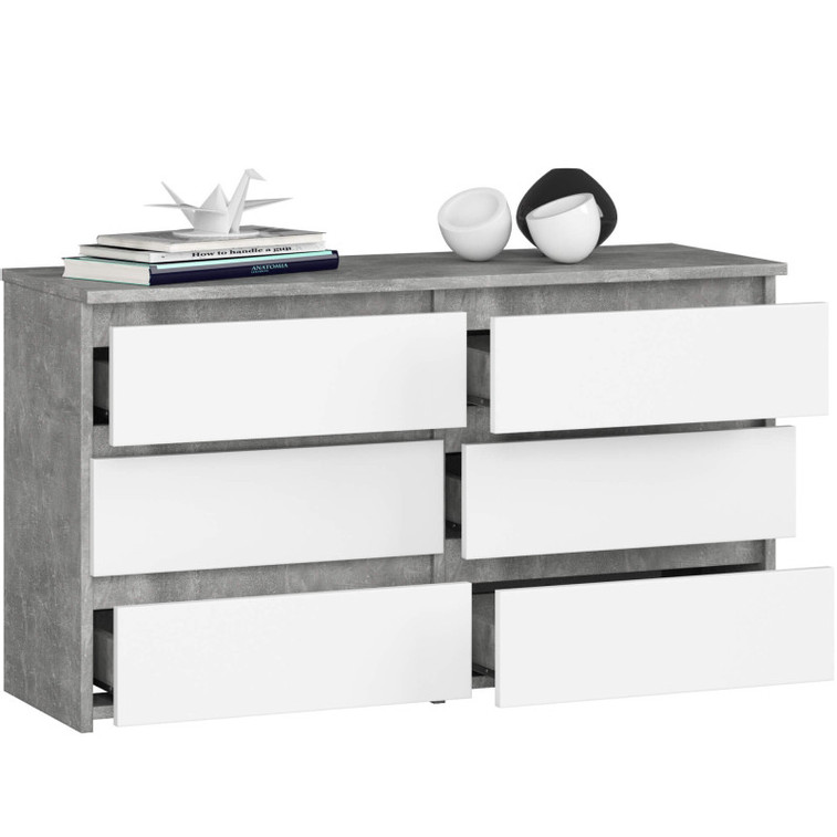 Jednoduchá a moderní komoda. Je vyrobená z pevné laminované desky, která je odolná proti oděru a poškození. Univerzální vzhled splní očekávání každého, kdo ocení kombinaci jednoduchosti a elegance. Bezúchytková čela zásuvek zajišťují pohodlné používání.
