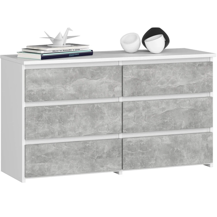 Jednoduchá a moderní komoda. Je vyrobená z pevné laminované desky, která je odolná proti oděru a poškození. Univerzální vzhled splní očekávání každého, kdo ocení kombinaci jednoduchosti a elegance. Bezúchytková čela zásuvek zajišťují pohodlné používání.
