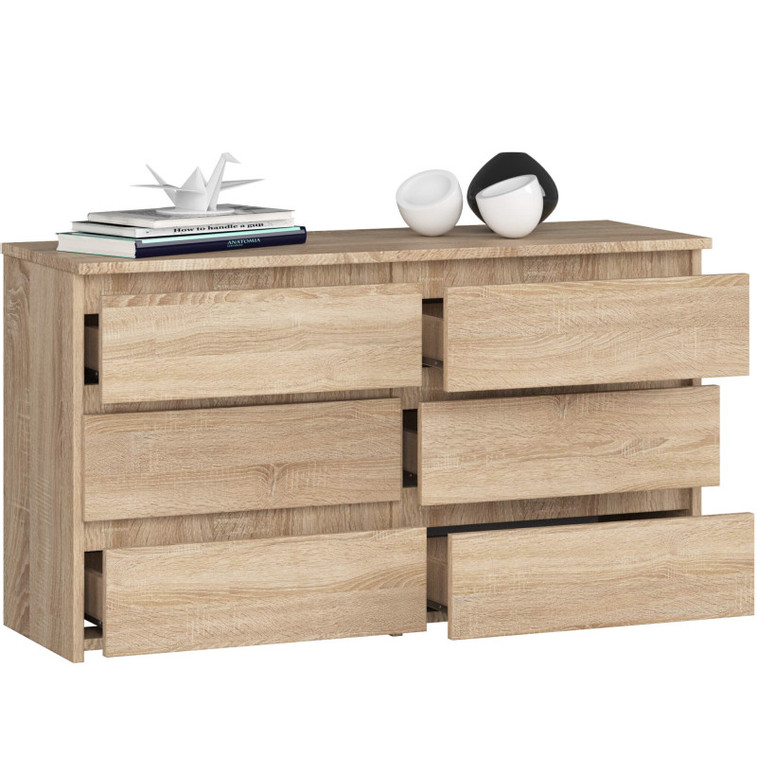 Jednoduchá a moderní komoda. Je vyrobená z pevné laminované desky, která je odolná proti oděru a poškození. Univerzální vzhled splní očekávání každého, kdo ocení kombinaci jednoduchosti a elegance. Bezúchytková čela zásuvek zajišťují pohodlné používání.