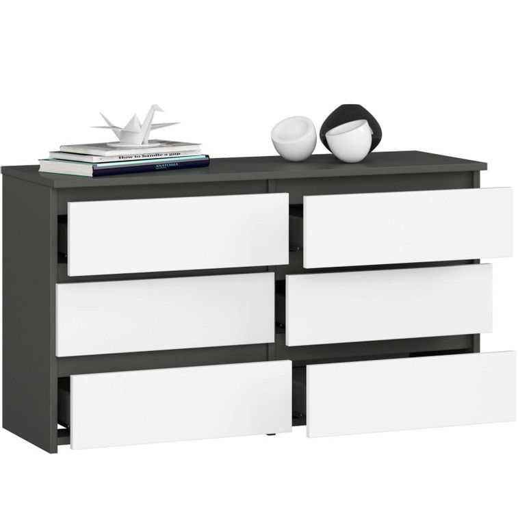 Jednoduchá a moderní komoda. Je vyrobená z pevné laminované desky, která je odolná proti oděru a poškození. Univerzální vzhled splní očekávání každého, kdo ocení kombinaci jednoduchosti a elegance. Bezúchytková čela zásuvek zajišťují pohodlné používání.