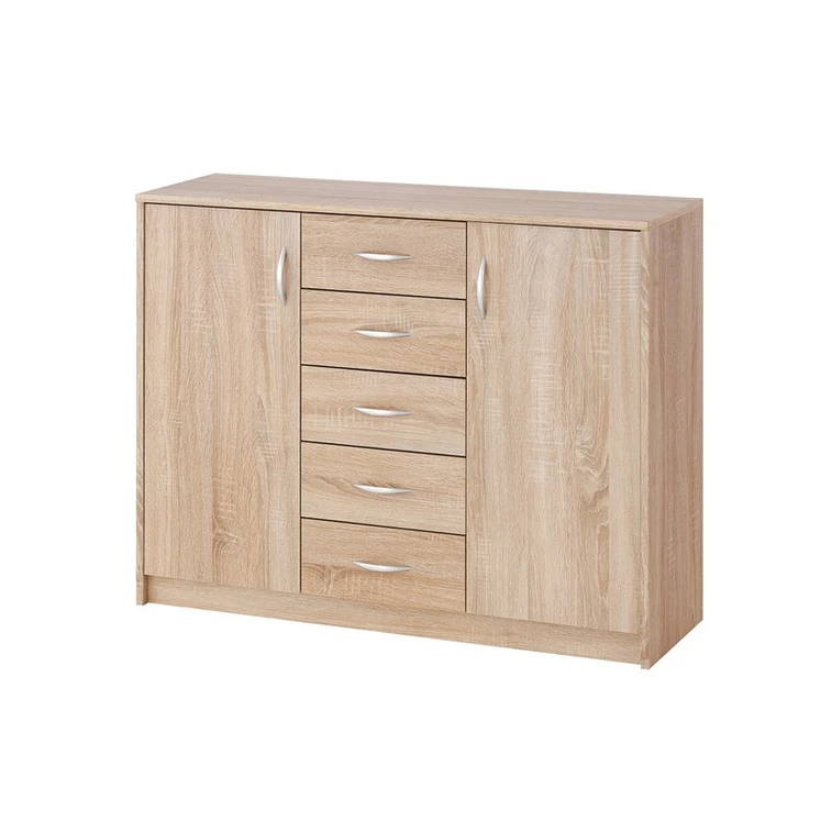 Jednoduchá a moderní komoda Julia K12D5. Je vyrobená z pevné laminované desky, která je odolná proti oděru a poškození. Univerzální vzhled splní očekávání každého, kdo ocení kombinaci jednoduchosti a elegance.